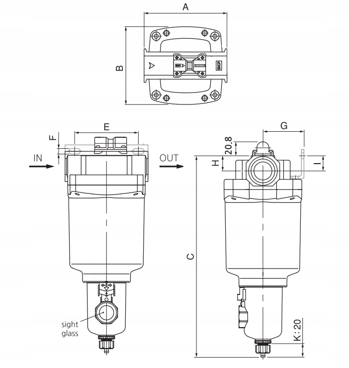 Urządzenie posiada okienko kontrolne (wskaźnik poziomu kondensatu), które umożliwia szybkie sprawdzenie ilości zgromadzonej wody i oleju w filtrze. Pozwala to na bieżącą kontrolę stanu pracy i zwiększa bezpieczeństwo oraz wygodę użytkowania.
